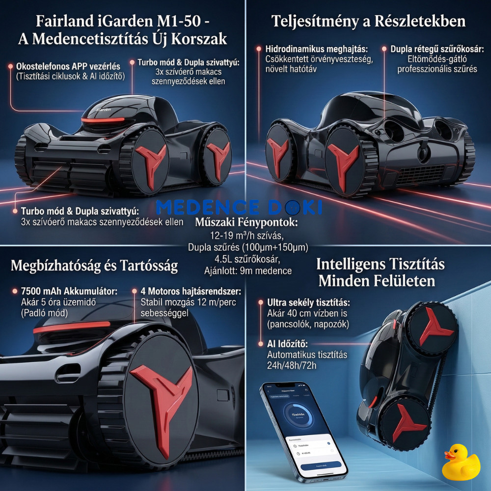 FairLand iGarden M1-50 akkumulátoros medence robotporszívó